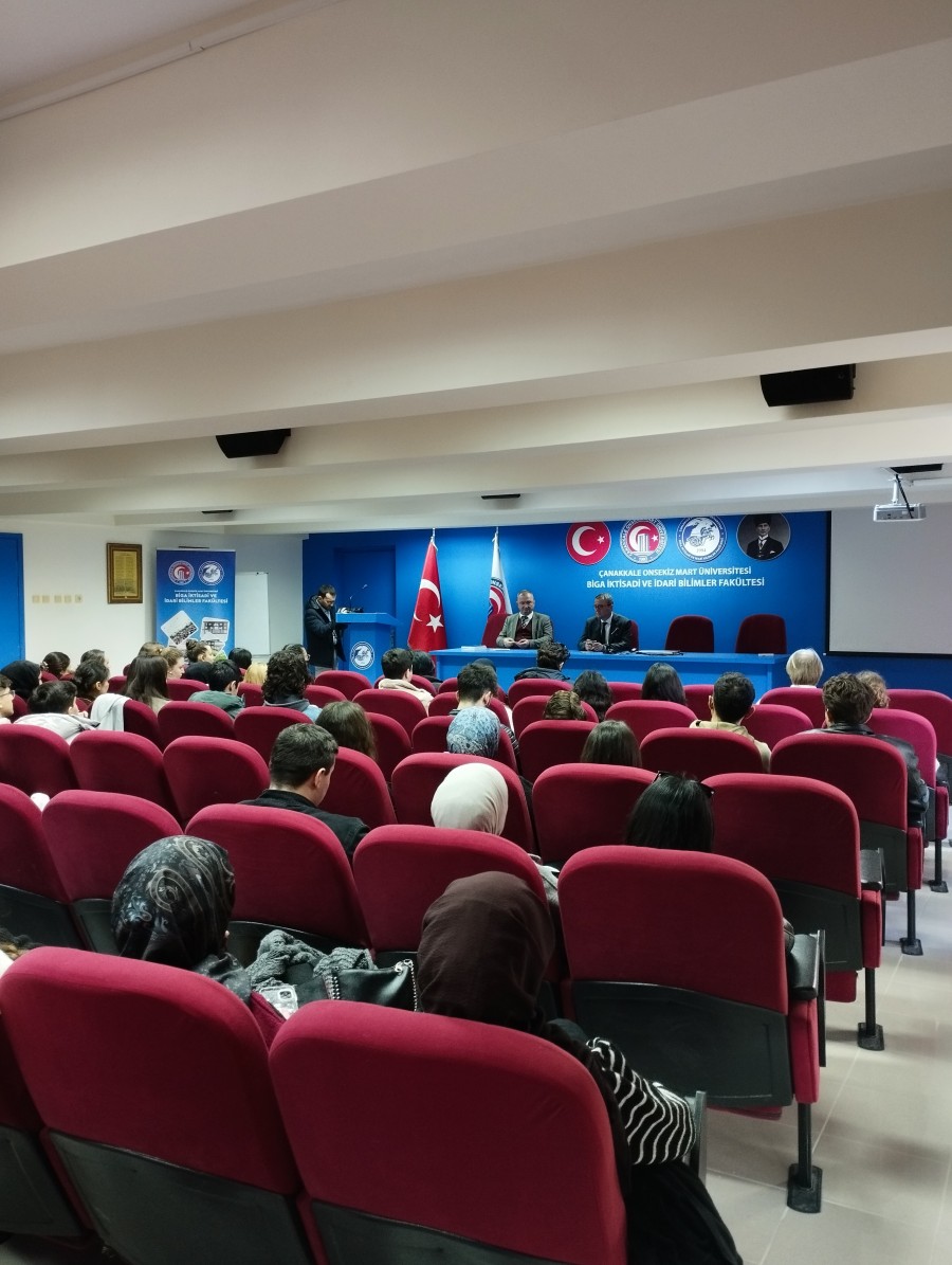 Dış paydaşlarla ilişkilerin geliştirilmesi kapsamında Biga Belediye Başkanı Alper ŞEN bölüm etkinliğine davet edilmiş olup kendisi ile bir söyleşi gerçekleştirilmiştir. 23.12.2025 tarihi saat 14:00’te BİİBF Dekanlık Konferans Salonu’nda gerçekleştirilen etkinlikte yerel yönetimlerin mali yapısı ve belediyelerin karşılaştıkları sorunlar ele alınmıştır.